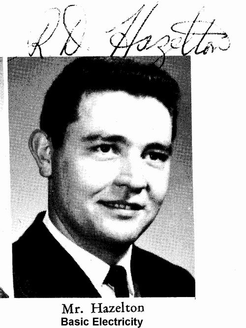 He was Very Instrumental in me learning Electronics in Grades 7, 8 & 9. Back than Transistors were Quite New, and this School course was just Basic Electricity. But Mr Hazelton went out of his way to introduce us to the Electronic Parts that were available back than.