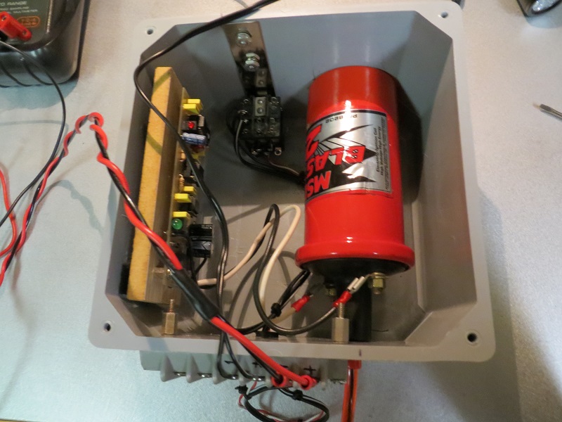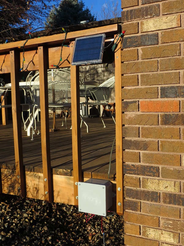 I Recieved this in an Email from "Dale" in the USA:QUOTE: Have my electric fence project finished and thought you might like to see the results. It's been going for a couple of weeks now and works great. I believe the pictures are self explanatory but if you have any questions feel free to ask. The sealed lead acid battery is in a bracket under the deck and the small 12 vdc relay in the enclosure is to turn the fence off during the day from a timer.