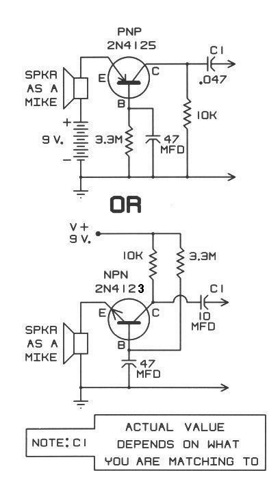 Using this circuit will give a reasonable output signal to drive an amplifier.The Speaker can be any size or even two in series. Eg: "A Woolfer and Tweeter" For increased bandwidth!